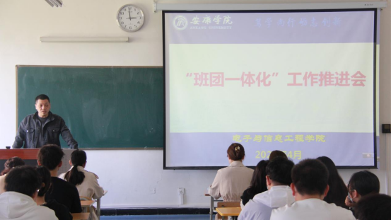 为围绕全团“凝聚青年、服务大局、当好桥梁、从严治团”四维工作格局,持续推进团支部、班委会一体化运行机制,形成育人系统新的有序结构和行为模式,4月20日电信学院在1320教室开展“班团一体化”工作推进会。pa电子官方网站学工办主任石纭昊,团总支书记张宇航,辅导员成英丽、程晓梅、李章雨、吕以宁出席此次会议,pa电子官方网站各班班长及团支书参加,本次会议由学工办主任石纭昊主持。