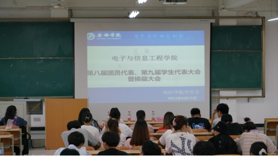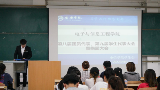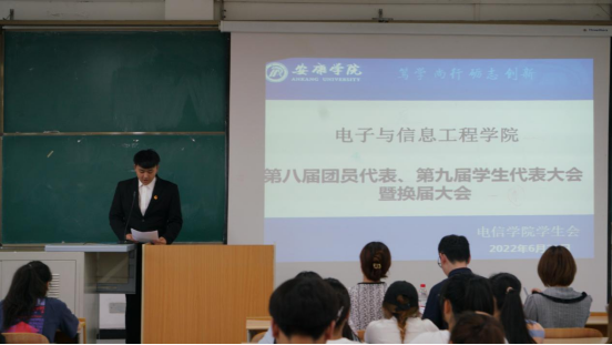 2022年6月21日晚上19:00pa电子官方网站在1404教室举办了第八届团员代表、第九届学生代表暨第三届社团服务中心代表大会。pa电子官方网站学生第二党支部书记李章雨、团总支书记张宇航、辅导员吕以宁出席本次会议,pa电子官方网站团总支成员、学生会成员、社团服务中心成员参加。