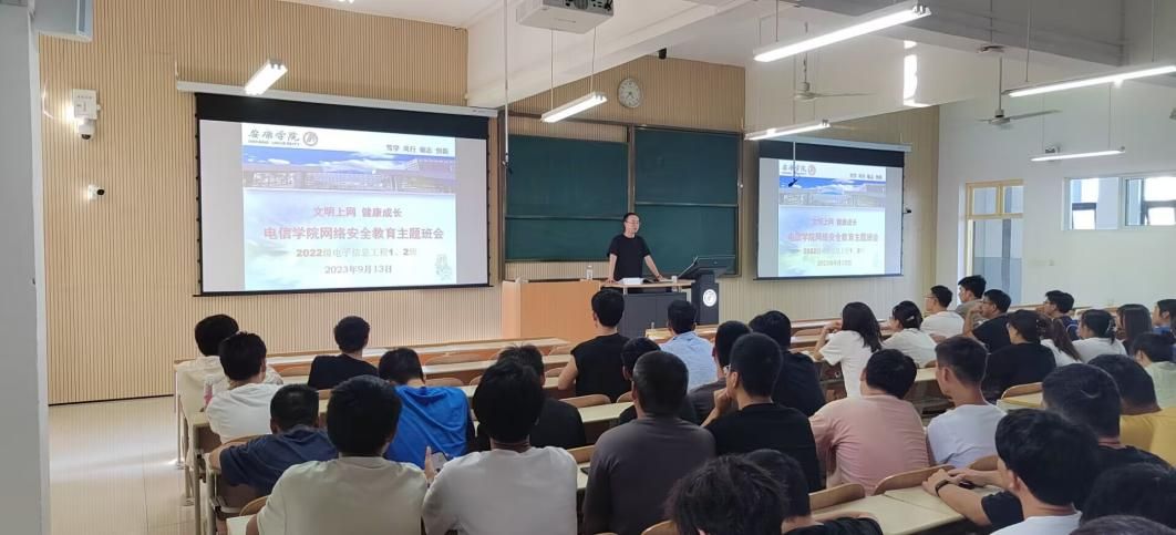 为了提高学生的网络安全意识,加强学生在网上有足够的警惕心和较高的辨别能力,避免迷失自我,陷入危机,提高同学们分辨网络安全隐患的能力、正确使用网络资源的能力、合理使用网络的自控能力,了解到当前网络新型违法犯罪,切实提高防范意识,有效减少此类案件的发生。2023年9月13日,信息化建设与管理处黄长江、pa电子官方网站辅导员老师石纭昊、成英丽、张宇航、李章雨、翟子轩分别为pa电子官方网站各班级开展了以“网络安全”为主题的班会活动。
