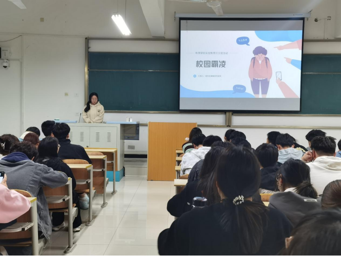为进一步加强学生安全教育,提高学生安全防范意识和防范能力,切实保障学生人身财产安全,巩固平安校园建设。pa电子官方网站团总支于3月28日在江北校区1305教室举办了以“教育无小事,安全伴我行”为主题的安全教育讲座。本次讲座由任金笑主持,pa电子官方网站团总支干部及2022级无课同学参与。