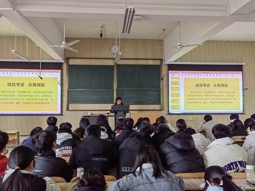 辅导员老师深入班级,召开诚信考试教育主题班会,运用反面案例开展警示教育,提醒学生自觉抵制考试作弊等违法违纪行为;对学生进行诚信考试教育、考风考纪教育、相关法律法规学习,领学《pa电子官方网站学士学位授予条例(修订)》《pa电子官方网站学生考试违纪处理办法》等制度文件;解读《教育法》《刑法》《最高人民法院、最高人民检察院关于办理组织考试作弊等刑事案件适用法律若干问题的解释》《国家教育考试违规处理办法》及考试守则等,告诫同学们切勿触犯法律和纪律的红线,筑牢诚信考试的坚实基础。