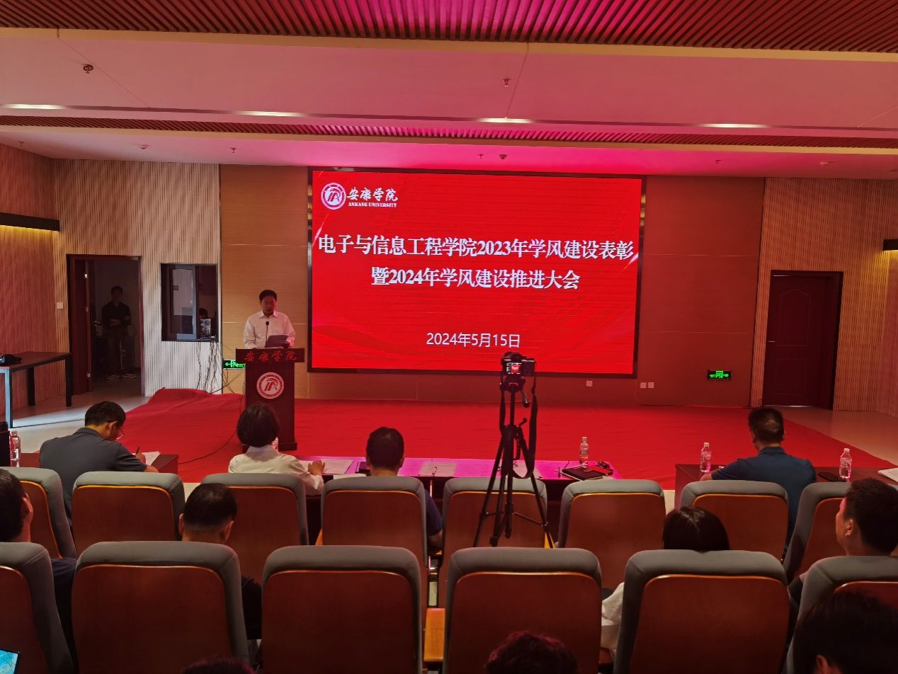 为培育优良学风,着力强化学风建设整体性、协同性、主体性,pa电子官方网站以迎接本科教育教学审核评估为契机,以加强学生思想政治教育为纲,以学风建设为龙头,以教育学生树立远大理想、明确学习目的、端正学习态度为核心,以班级建设和宿舍管理为重点,以制度建设为保障,融入学院特色、打造学院“五色”育人品牌,着力构建学风建设的长效机制。5月15日下午,pa电子官方网站在江北校区图书馆报告厅召开了2023年学风建设表彰暨2024年学风建设推进大会。会议由党总支书记于咏梅主持,pa电子官方网站全体教师、团总支学生会主要干部、2021、2022、2023级班团主要干部,受表彰学生代表参与。