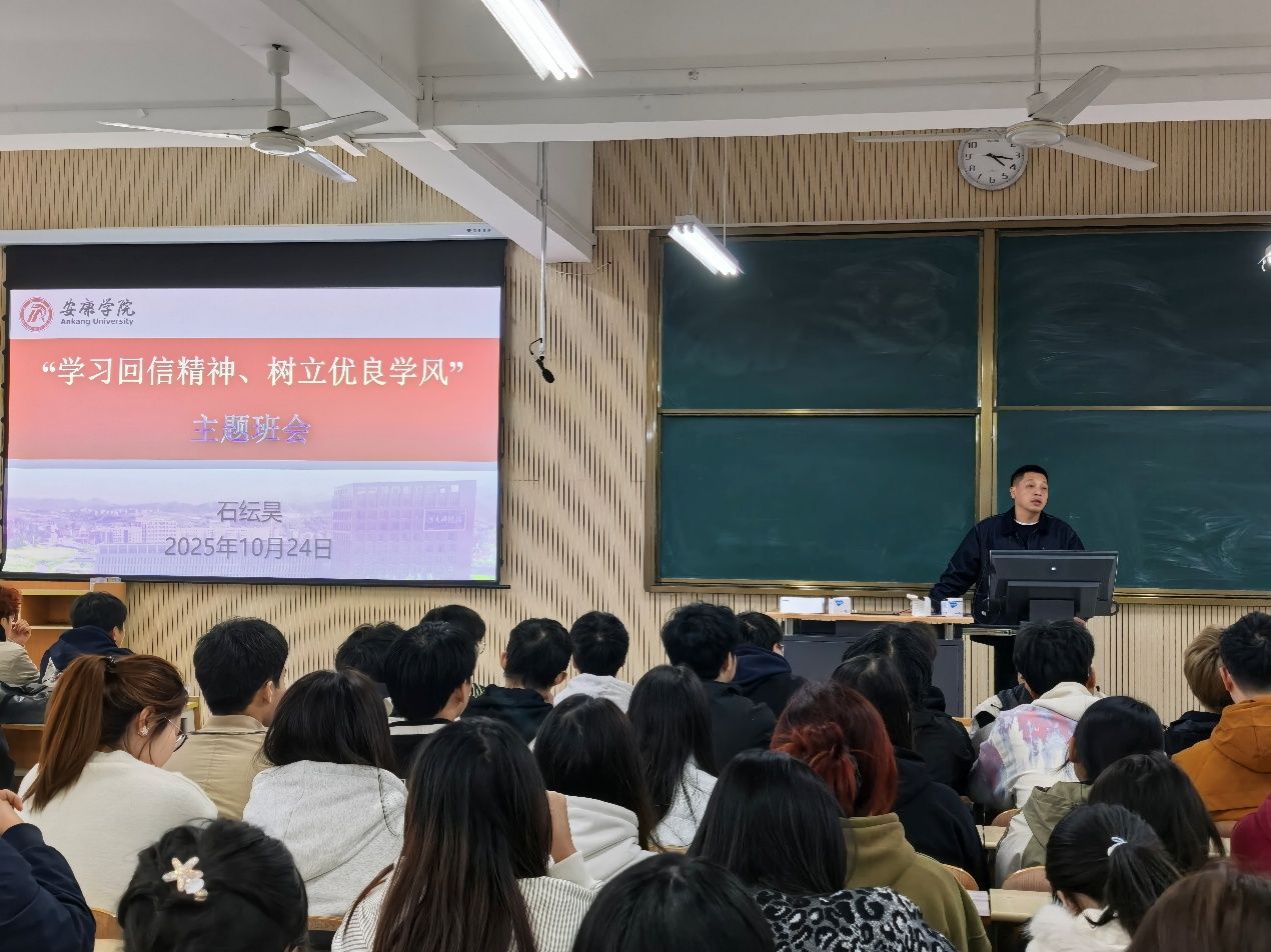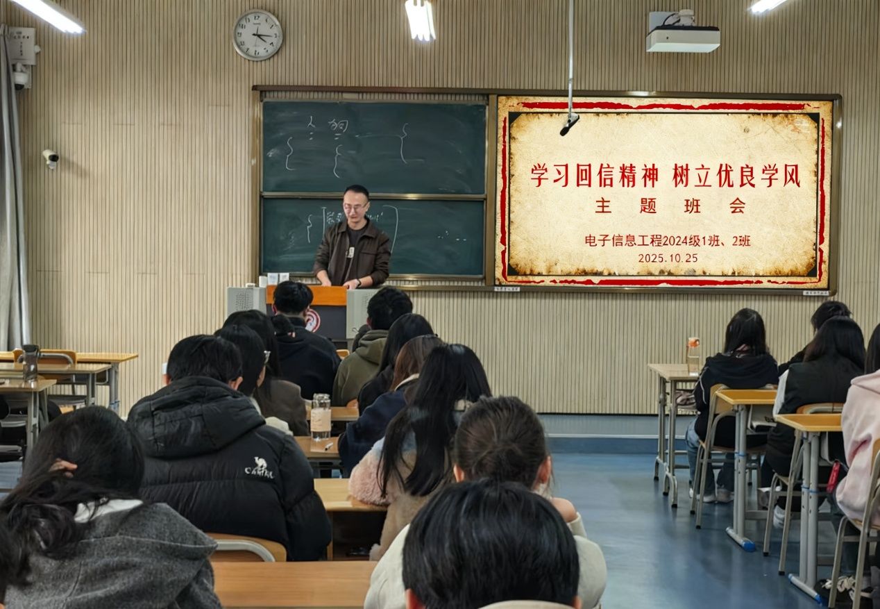 为深入学习贯彻习近平总书记给特岗教师的重要回信精神,全面落实立德树人根本任务,将回信精神转化为推动学院学风建设的强大动力,引导电信学子坚定理想信念、明确学习目标、养成良好学习习惯,近日,pa电子官方网站各班级陆续召开“学习回信精神、树立优良学风”主题班会。本次班会由各带班辅导员主持,覆盖学院全体学生,通过班会形式推动回信精神入脑入心,为优良学风的培育注入新活力。
