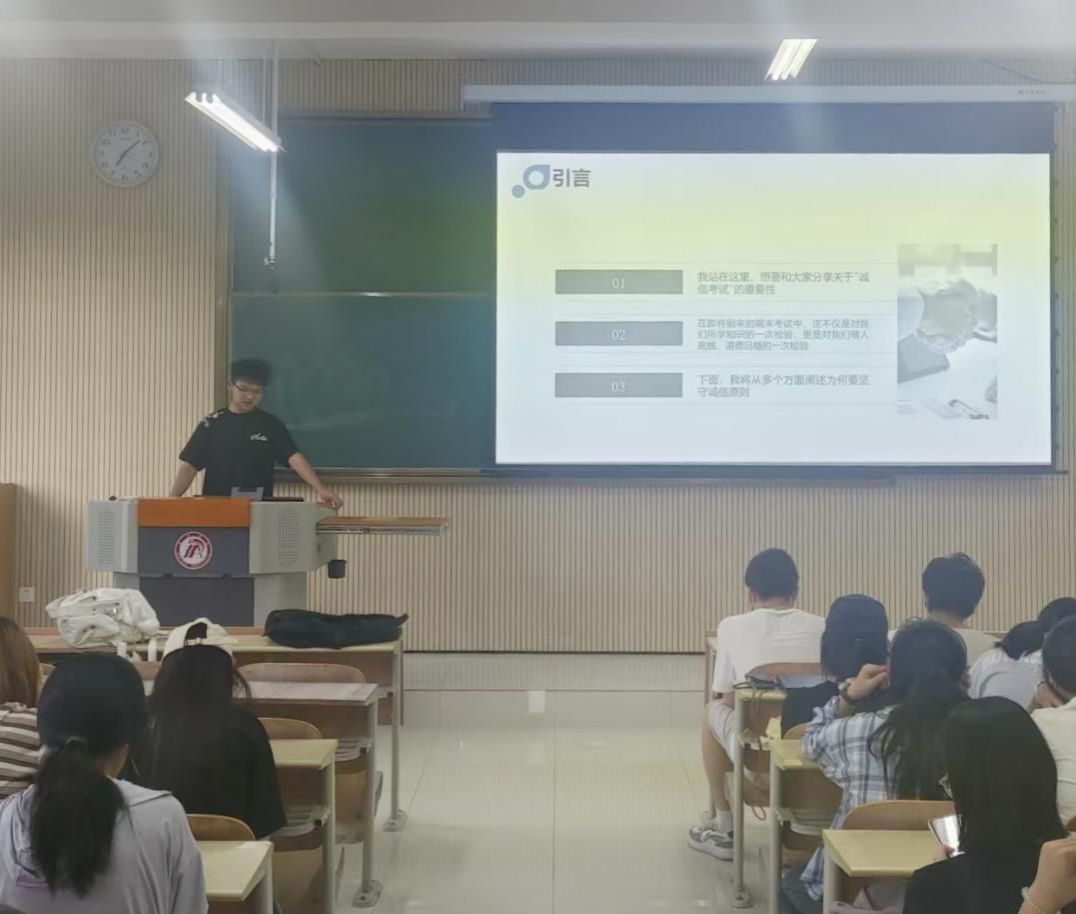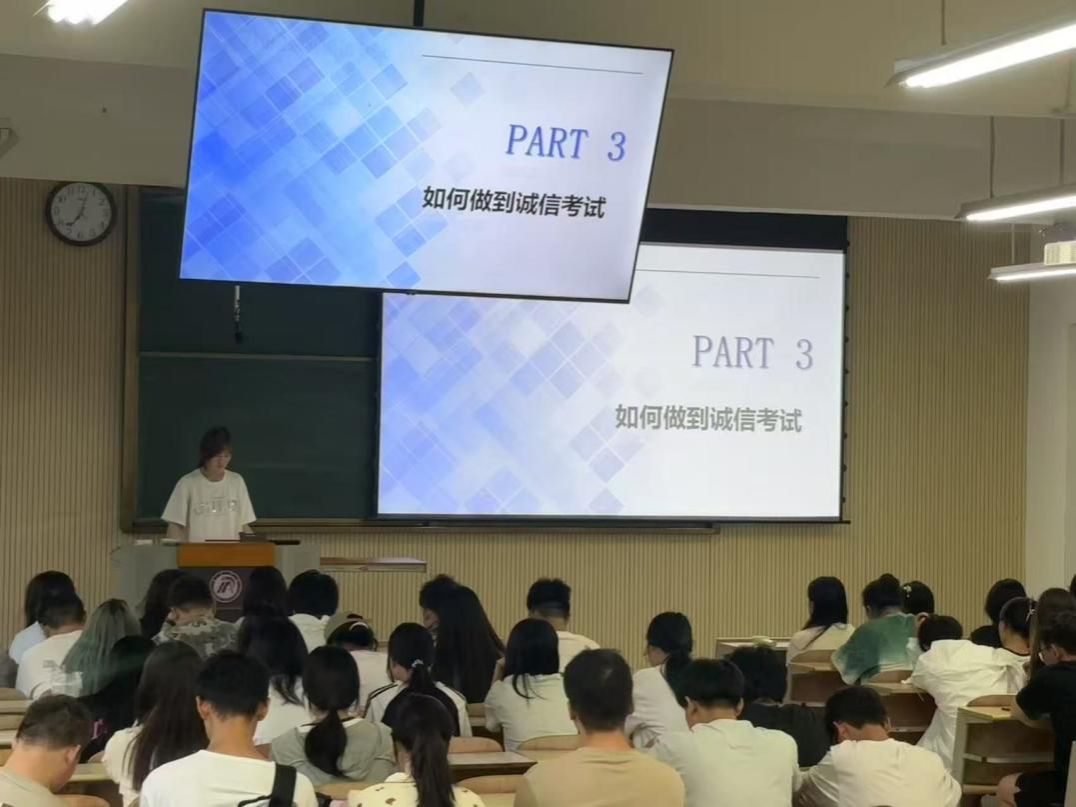 会议伊始,学院学生会负责人结合历年考试情况,强调诚信考试对于学风建设与个人品德塑造的重要意义,指出“诚信考试”不仅是知识检验,更是对做人底线、道德品格的试炼。同时,负责人深刻剖析考试作弊行为对个人学业发展造成的严重后果,明确考试违规处理方法,让同学们充分认识到考试纪律的严肃性。