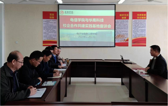 为更好的促进pa电子官方网站专业发展,建立优秀实习基地,发挥“校企联合”促进高质量应用型本科人才培养,2023年11月17日pa电子官方网站与华高科技(苏州)有限公司举办了校企合作共建实践基地座谈会。pa电子官方网站院长陈守满、副院长王克刚、宋权华、党总支副书记蔡正旺和相关系主任参加了座谈会,会议由蔡正旺主持。华高科技(苏州)有限公司人力部主管张桂参加了此次座谈会。