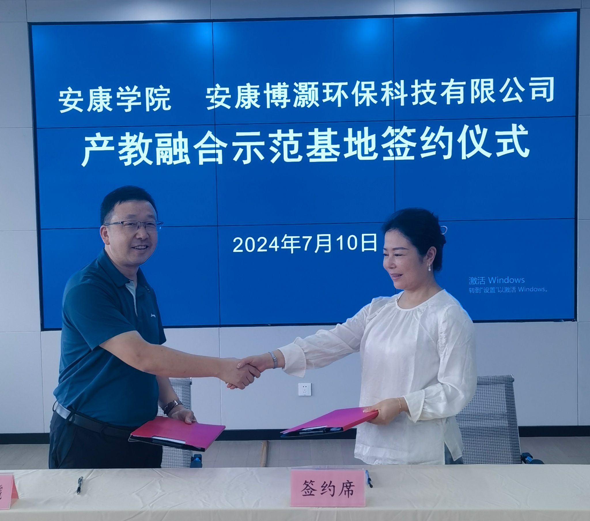 2024年7月10日,在安康博灏环保科技有限公司培训中心,pa电子官方网站与安康博灏环保科技有限公司产教融合签约仪式隆重举行,副院长王克刚、安康博灏环保科技有限公司董事长刘燕出席签约仪式。