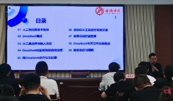 4月24日,受陕西省平利县委组织部邀请,pa电子官方网站王克刚教授在平利县优秀青年干部培训班上作题为“人工智能大模型(DeepSeek)赋能政务操作与使用”的专题培训。本次培训聚焦人工智能技术在政务场景中的实践应用,通过理论讲解、案例演示与实操相结合的方式,助力青年干部提升数字化治理能力,为县域政务智能化转型注入新动能。