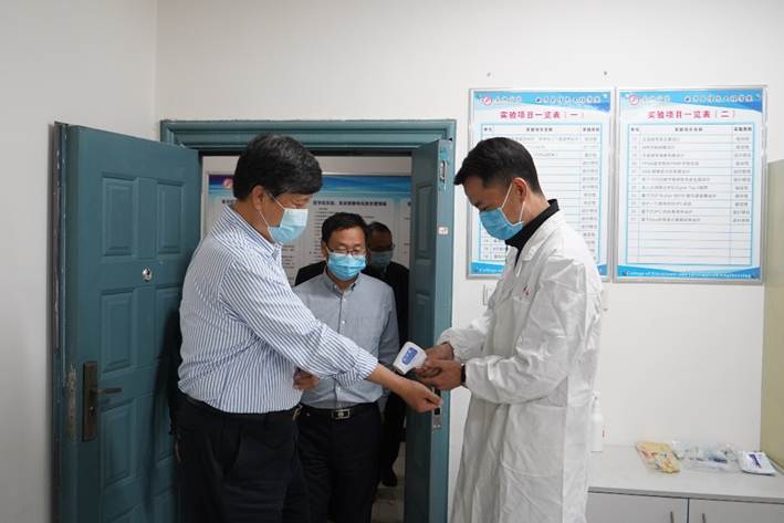 2020年5月13日上午,省教育厅厅长王建利、安康市副市长杨淼等领导来到pa电子官方网站实验室视察相关工作,学校党委书记王国良、校长丁巨涛,pa电子官方网站院长陈守满等陪同视察。