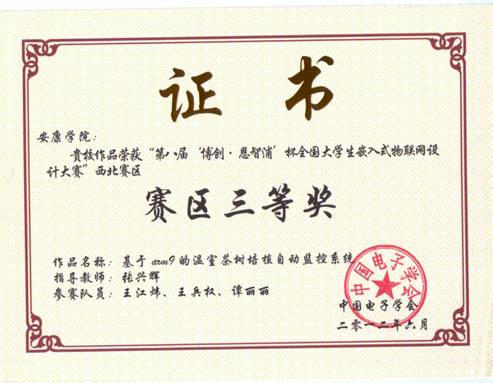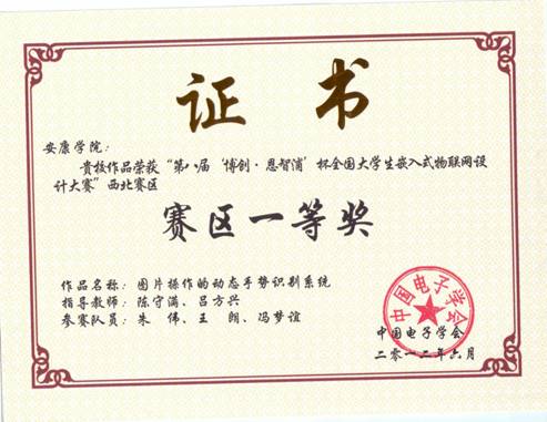 6月9日-10日,第八届 “博创杯·恩智浦”全国大学生嵌入式物联网设计大赛(西北赛区)在西安邮电学院南校区举行,西北五省16所高校的126支队伍报名参赛,经过层层选拔最终有63支队伍进入了西北赛区的决赛。这次比赛中我校有3支本科生代表队和1支专科生代表队报名参赛,最终只有两支本科队伍进入西北赛区决赛。电子与信息工程系朱伟、王朗、冯梦谊同学设计,陈守满、吕方兴老师指导的《图片操作的动态手势识别系统》获一等奖,王江炜、王兵权、谭丽丽设计,张兴辉老师指导的《基于ARM9的温室茶树培植自动监控系统》获得三等奖。朱伟、王朗、冯梦谊同学设计的作品《图片操作的动态手势识别系统》被选送代表西北赛区参加7月7日在北京航空航天大学进行的全国总决赛。