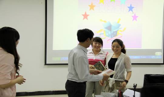 最后展示的是两件flash教学课件,主题分别是汉诺塔和数据库查询原理。这两个课件虽说都是flash课件,表现形式却大不相同,各有特色。精彩的讲解和设计理念将大家带入了整场比赛的高潮部分,不时传来阵阵掌声。