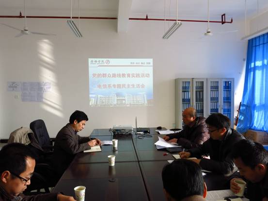 根据学校党委关于深入开展党的群众路线教育实践活动的统一部署,遵照《pa电子官方网站深入开展党的群众路线教育实践活动实施方案》第二环节查摆问题、开展批评工作的要求,经学校教育实践活动办公室同意,12月11日下午,电信系在江北科技楼B702室召开了系领导班子专题民主生活会。校党委委员、副校长陈刚、校第二督查组刘铁出席会议进行指导,系班子成员李红兵、张东红、陈守满、王庆春参加了会议,会议由党总支书记李红兵主持。