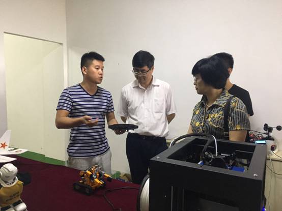 6月15日,省科技工委委员、科技厅副厅长兰新哲,总工程师杨柳带领相关职能部门干部一行7人莅临省级创新创业教育改革试点学院,pa电子官方网站的“云物大智”创客坊考察调研指导工作,我校党委书记王国良、党委副书记胡波随同考察调研。