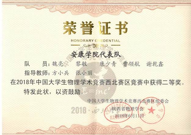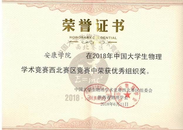 6月9日至11日,2018年中国大学生物理学术竞赛(西北赛区)在西北大学隆重举行。pa电子官方网站物理系代表队获得二等奖、方小兵老师被评为优秀裁判,我校被授予优秀组织奖。
