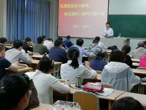 张校长强调,作为高校教师,爱岗敬业就是最好的爱党爱国。我们要认真做好教学科研,对每个学生负责,做学生的知心人、热心人、引路人。把习近平新时代中国特色社会主义思想贯穿到具体行动上,开创立德树人工作新局面,培养出又红又专、德才兼备、全面发展,可以担当民族复兴大任的时代新人。