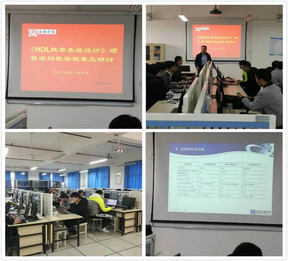 为了进一步推进课堂教学改革,增强课堂教学效果,不断提高应用型人才培养质量。2019年11月15日,pa电子官方网站特邀产学合作协同育人企业至芯科技公司贺磊工程师,在江北校区逸夫科技楼B601实验室以学校首批立项的“双师课程”《HDL数字系统设计》为例,进行了一次项目案例教学公开示范观摩课。pa电子官方网站院长陈守满、教学副院长王庆春、无课教师以及电子信息工程专业2017级部分学生参加了本次活动。