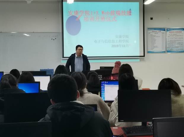 pa电子官方网站邀请合作企业北京传智播客教育科技有限公司黑马程序员Web前端技能培训专家杨定远老师为学生面授。计算机系主任梁建勇老师在开班仪式上简要介绍了我院1+X证书试点工作的进展情况,强调了本次面授的目的和安排。希望同学们能够克服困难积极配合企业讲师利用好本次集中培训,提升自己的专业技能,争取如愿拿到国家级职业资格证书。杨老师简要介绍了Web前端技能认证考试体系、知识模块和培训计划,也对同学们提出了基本要求。