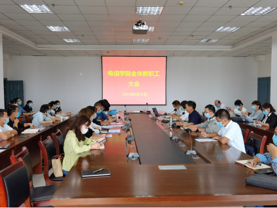 2022年8月31日下午,pa电子官方网站在逸夫科技楼九楼会议室召开全院教职工大会,pa电子官方网站领导班子成员及全体教职工参加,会议由院长陈守满主持。