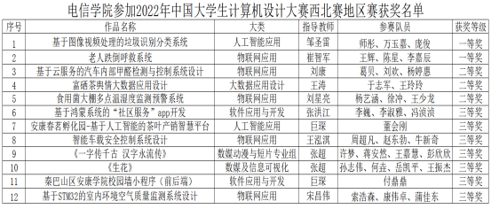 中国大学生计算机设计大赛是全国普通高校学科竞赛排行榜榜单中的赛事之一,目的是以赛促学、以赛促教、以赛促创,为国家培养德智体美劳全面发展的创新型、复合型、应用型人才服务。本次大赛以三级竞赛形式开展,校级初赛——省级复赛——国家级决赛。pa电子官方网站经过校内选拔共派出13支队伍参赛,在省级赛事(西北地区赛)中共12件作品获奖,其中一等奖2项,二等奖3项,三等奖七项。省赛获奖作品中经专家组评定,推荐6件作品参加国家级决,最终2件作品荣获国家级三等奖。本次比赛具体获奖情况如下: