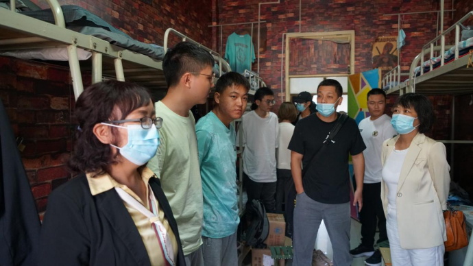 2022级辅导员成英丽、张宇航通过走访宿舍,深入了解新生的基本情况,提醒新生要增强安全防范意识,确保人身财物安全,搞好文明寝室建设,营造良好的住宿与学习环境。同时希望同学们高度重视疫情防控工作,按时完成健康打卡;提醒大家要尽快转变角色,熟悉新环境,以积极的心态和良好的面貌迎接大学校园生活。