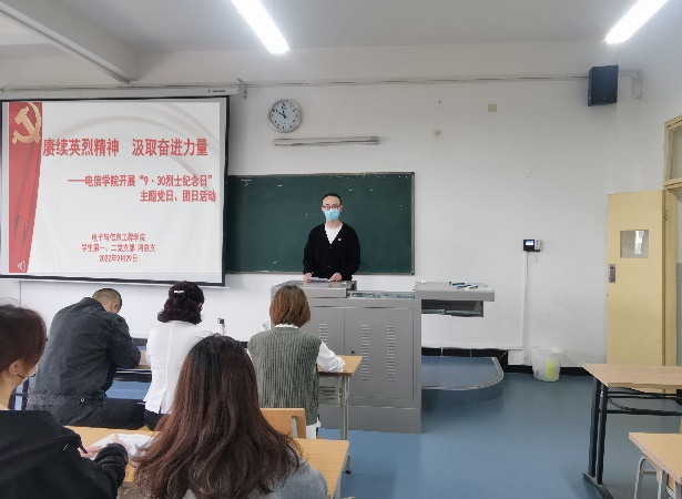9月29日早上,在第9个国家烈士纪念日到来之际,pa电子官方网站党总支组织学生第一党支部、学生第二党支部、团总支开展“赓续英烈精神 汲取奋进力量”烈士纪念日主题党日、团日活动。pa电子官方网站党总支组织委员成英丽,学生第一、二党支部书记李章雨、吕以宁,学生第二党支部组织(纪检)委员石纭昊,团总支书记张宇航,全体学生党员、团员代表、学生会主要干部、退役大学生士兵代表参会,活动由pa电子官方网站团总支书记张宇航主持。