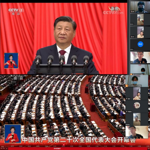 10月16日上午,中国共产党第二十次全国代表大会在北京人民大会堂开幕。习近平总书记代表第十九届中央委员会向大会作了题为《高举中国特色社会主义伟大旗帜 为全面建设社会主义现代化国家而团结奋斗》的报告。pa电子官方网站组织在校学生党员、入党积极分子在江北校区1319、1320教室集中观看大会直播,根据疫情防控要求,全院教职工及部分未在校学生通过电视、网络、新媒体等途径,积极收听收看党的二十大开幕会盛况。