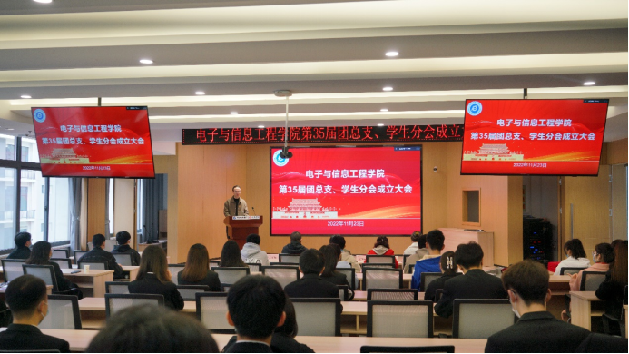 为切实提高pa电子官方网站学生干部工作实效,确保各项工作机制高效运转,凝聚新一届团学组织学生干部的责任与担当,11月23日,pa电子官方网站在江北校区乡村振兴学院报告厅召开了第35届团总支、学生会分会成立大会,pa电子官方网站党总支书记于咏梅、学生工作办公室主任石纭昊、党总支组织委员成英丽和学生第二党支部书记李章雨,pa电子官方网站兄弟院系学生分会主席团代表、pa电子官方网站团总支、学生分会和社团服务中心成员参加会议。此次会议由pa电子官方网站团总支书记张宇航主持。