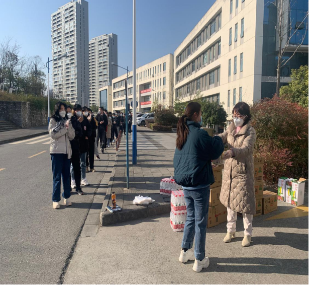 冬至当天,阳光明媚,在pa电子官方网站江北校区的教学楼前,成英丽勉励考研的同学们要以积极乐观的心态面对疫情,在最后关头要调整好身体和心理状态,同时叮嘱他们要劳逸结合,尤其是要注意科学防护、顺利应考。慰问中,学院为在校的112名同学赠送了“考研上岸大礼包”,无论是“薯”你最牛的薯愿和牛奶、好运“旺旺”的仙贝、“顺风顺水”的纯净水,还是守护健康安全的口罩,都满载着学院诚挚的祝福。同学们对学院的亲切探望和慰问,倍受感动、深受鼓舞,并表示在即将到来的研究生考试中会更加自信自强、勇毅前行,用最好的状态迎接考试,用最好的成绩回报学校。