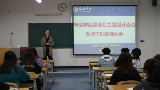为积极培育和践行社会主义核心价值观,传承和弘扬雷锋精神,致敬时代先锋,引领团组织干部践行雷锋精神及奉献、友爱、互助、进步的志愿精神,pa电子官方网站团总支于3月22日在江北校区1319教室开展以“传承雷锋精神 做新时代青年”为主题的团日活动暨团干部培训大会。学院团总支书记张宇航、副书记任柯伊、任金笑、组织部部长陈新茹、摄影部部长沈晓轩、编辑部部长李少博、以及各班团支书参加本次会议,本次会议由团总支副书记任金笑主持。