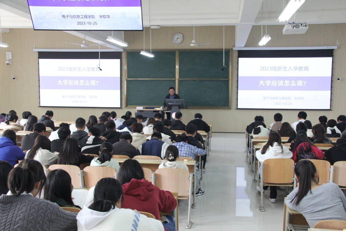 为帮助pa电子官方网站2023级新生更好的适应大学新生活,加强专业认知,培养良好的学习习惯,实现由中学到大学的转变。10月25日下午,pa电子官方网站副院长宋权华在江北校区1204教室讲授主题为“大学应该怎么读?”新生教育大会,pa电子官方网站2023级全体新生参加。