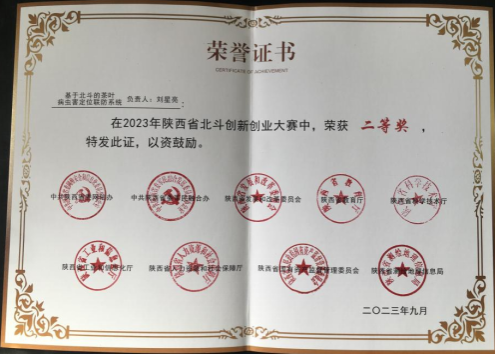 近日,2023年陕西省北斗创新创业大赛比赛结果揭晓,pa电子官方网站教师刘星亮的《基于北斗的茶叶病虫害定位联防系统》荣获本次大赛二等奖,学生李冠辰的《基于北斗定位的导盲小车控制系统》荣获本次大赛最具创意奖。