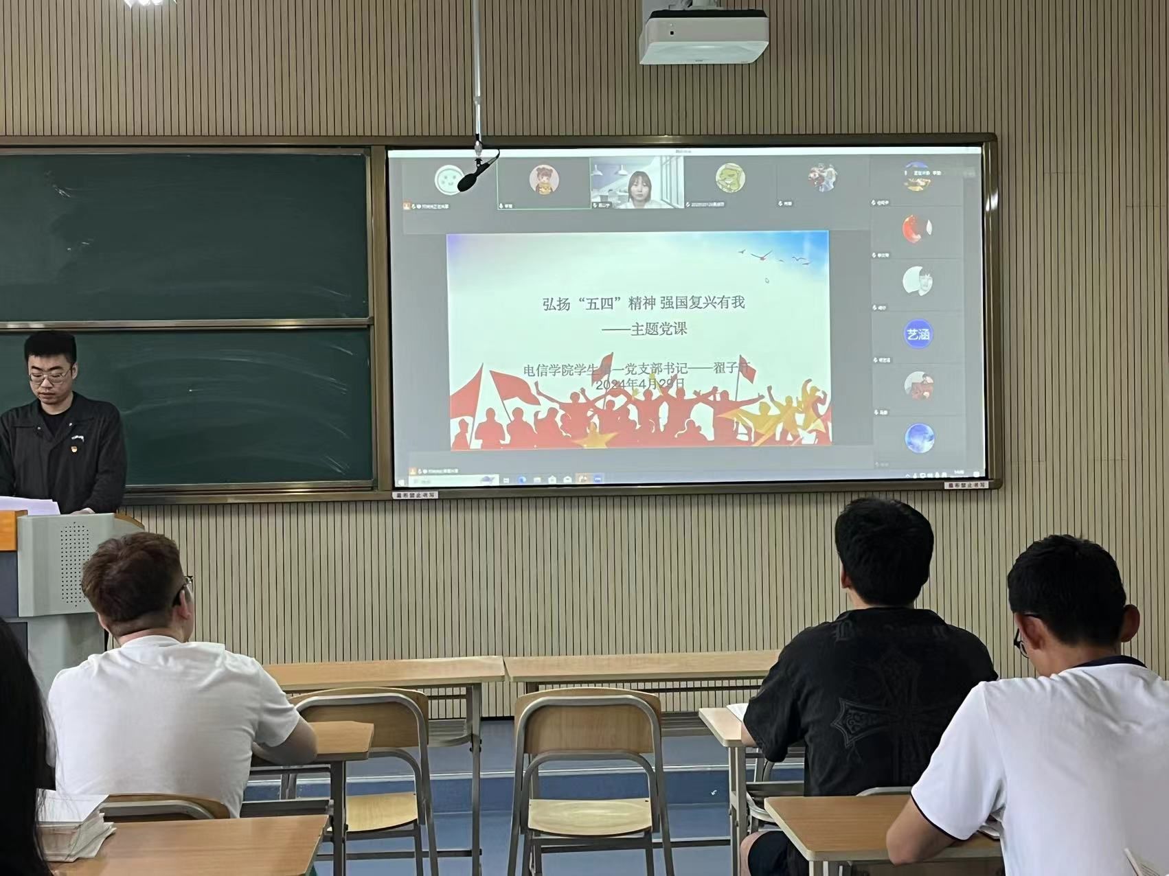 在五四青年节即将来临之际,为激励青年党员积极践行五四精神,pa电子官方网站学生第一党支部书记翟子轩在江北校区1319为支部全体党员上了一堂主题为 “弘扬五四精神,强国复兴有我”的党课。pa电子官方网站学生第一党支部全体党员、发展对象、积极分子代表参与。