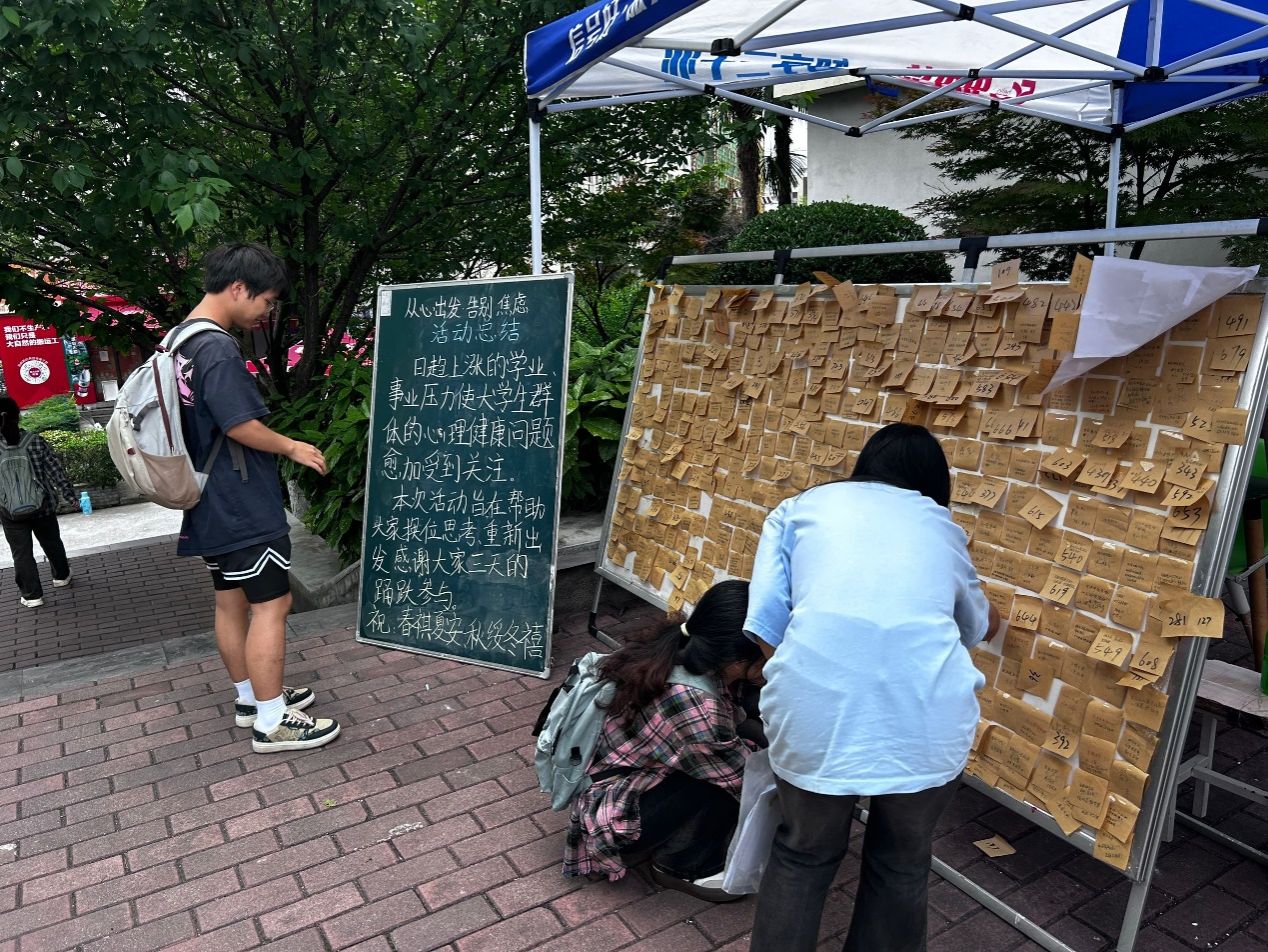 为帮助学生健康发展,坦然面对负面情绪,更好地把握生活节奏,pa电子官方网站于2024年5月7日至9日在江北校区5、6号公寓楼中间举办“从心出发,告别焦虑”活动,全校约一千余人次参与此次活动。