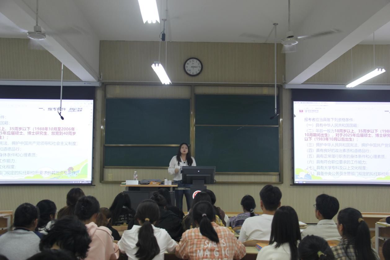在2025年国家公务员考试即将到来之际,为给电信青年提供专业的备考指导,帮助他们更好地备战考试,提升学院应届毕业生的应考能力,pa电子官方网站特邀华图教育公考培训教师,于10月16日在1203教室以“筑梦公考,启航未来”为主题举办了2025年国家公务员考试公告解读公开课暨考试技巧与策略分享讲座。