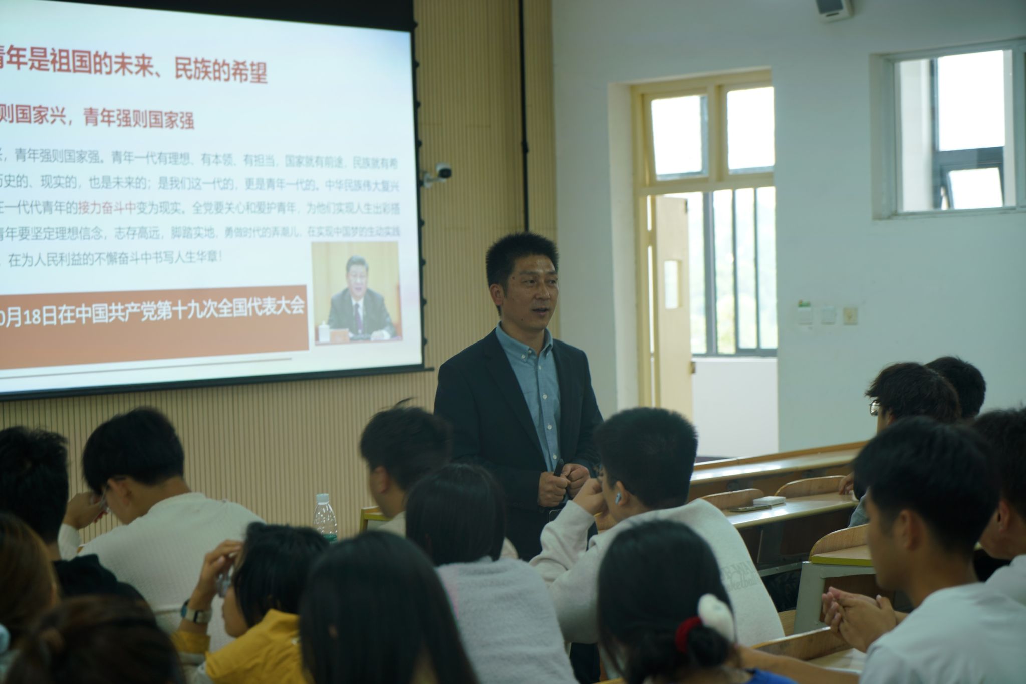 讲座围绕“习近平总书记寄语当代青年的重要论述”展开,指出中国青年要立志做有理想、敢担当、能吃苦、肯奋斗的新时代好青年。讲座由“习近平寄语广大青年”、“为什么要立志报国,如何立志报国”、“如何成为新时代好青年”三部分组成。