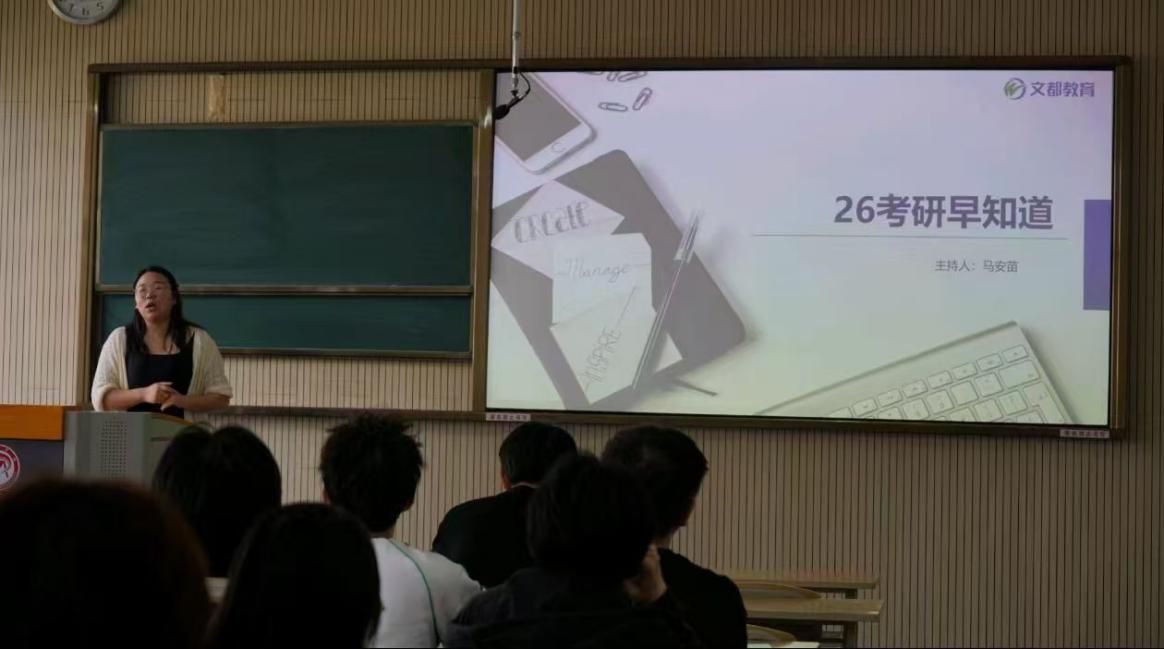 为帮助学生了解考研最新形势、明确考研复习方向,做好考研规划,切实提升学院的备考效率和“上岸率”,10月16日14:30,pa电子官方网站在江北校区1320教室举行了题为“2026考研早知道”的考研专题讲座。本次讲座由文都教育的刘丹老师主讲,2022级拟考研学生参加。