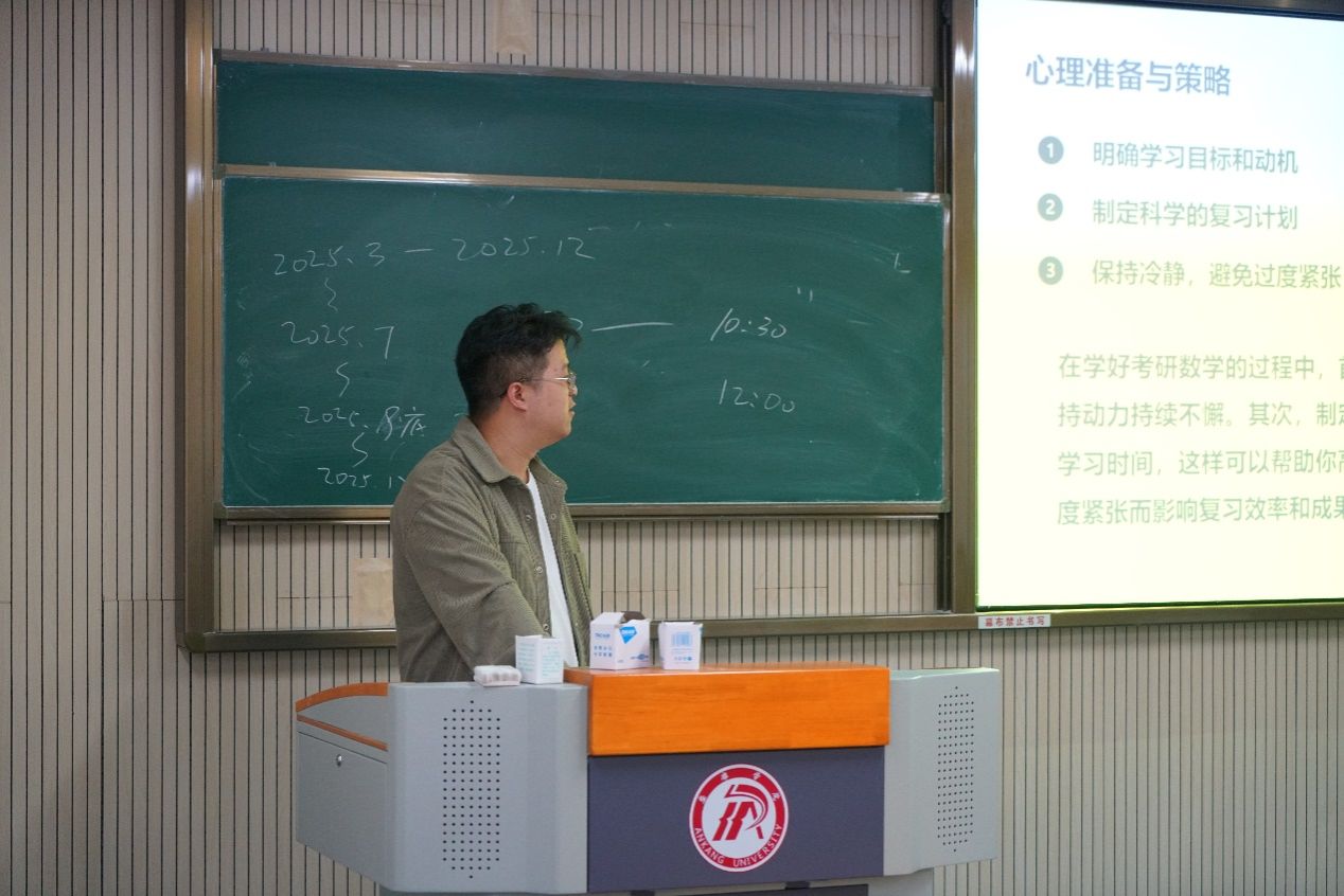 为加深电信学子对考研数学的了解,进一步提高学生考研积极性,10月31日,pa电子官方网站在江北1321教室开展“万千“研”语助前行”为主题的数学考研经验分享会。讲座由pa电子官方网站教师李新阳讲解,2022级拟考研学生参加。