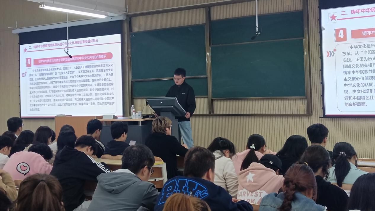 为深入学习贯彻习近平总书记关于加强和改进民族工作的重要思想,进一步铸牢中华民族共同体意识,2024年10月30日下午,pa电子官方网站学生第二党支部书记贾金兵在江北校区1201、1203教室讲授主题为“铸牢中华民族共同体意识 深入学习习近平文化思想”的入学教育暨专题党课,pa电子官方网站2024级全体新生参加。