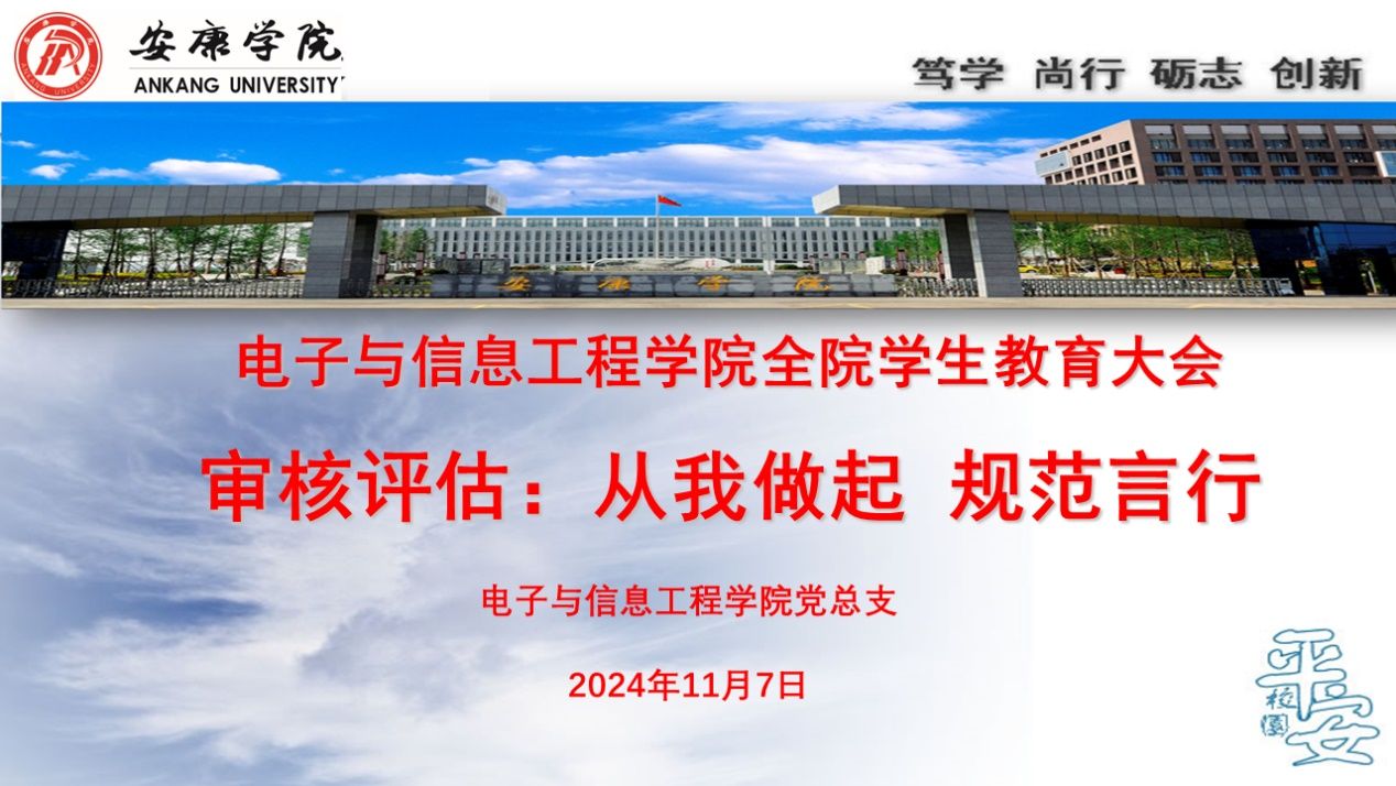 为全面落实本科教育教学审核评估工作要求,营造浓厚的迎评促建氛围,扎实做好本科教育教学审核评估工作期间学生思想政治工作,广泛凝聚共识,pa电子官方网站于11月7日召开主题为“审核评估:从我做起 规范言行”的全院学生教育大会。参加此次大会的有pa电子官方网站党总支书记于咏梅,副书记蔡正旺,学生工作(就业工作)办公室主任石纭昊,团总支书记(创新创业工作办公室主任)张宇航,党总支组织委员、辅导员成英丽,学生第一党支部书记、辅导员翟子轩,学生第二党支部书记、辅导员贾金兵,团总支、学生会、社团服务中心全体学生干部,2022、2023、2024年级班团干部、宿舍长。会议由学生工作(就业工作)办公室主任石纭昊主持。