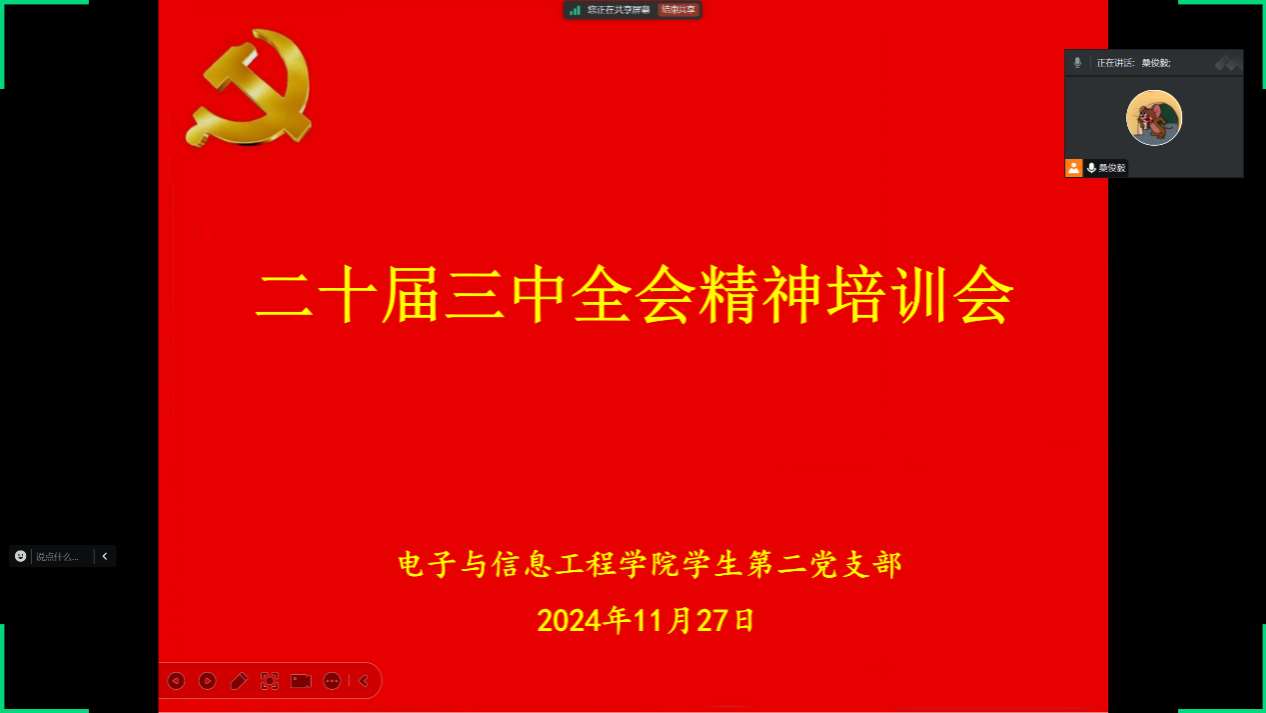 活动伊始,学生第一党支部支部书记翟子轩阐述了本次活动的背景和重要意义。支部全体党员一同观看了《深入学习贯彻习近平总书记关于全面深化改革的一系列新思想、新观点、新论断和党的二十届三中全会精神》的视频课程。视频中,从党的二十届二中全会以来党和国家事业取得的成绩;党的二十届三中全会主题;进一步全面深化改革的重要性和必要性;习近平总书记关于全面深化改革的一系列新思想、新观点、新论断;进一步全面深化改革的重大原则;进一步全面深化改革的重大决策等六个方面对党的二十届三中全会精神进行了全面、系统、深入地解读,深刻剖析了全面深化改革的内涵与时代要求。