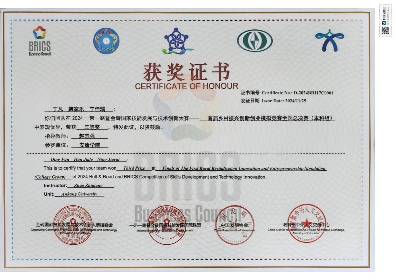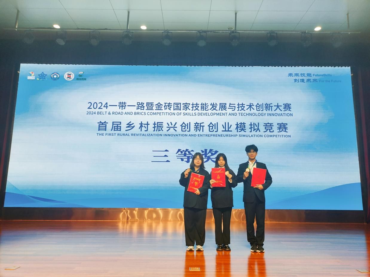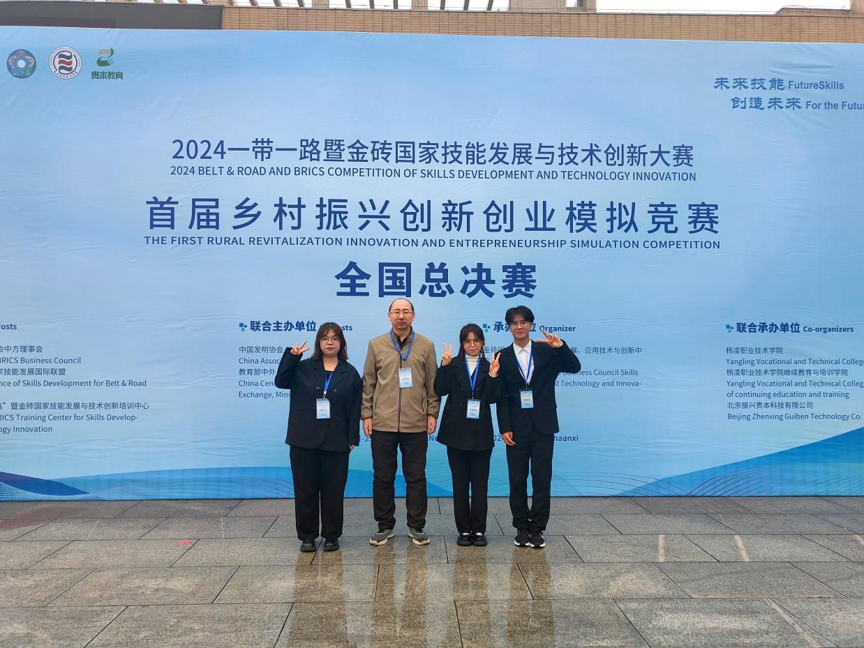 11月23日至25日,2024一带一路暨金砖国家技能发展与技术创新大赛首届乡村振兴创新创业模拟竞赛全国总决赛在杨凌职业技术学院举行,总决赛有来自全国26个省市经过校赛和东部、中部、西部大区赛层层选拔的195支队伍参加,经过激烈角逐,pa电子官方网站2023级电子商务专业学生丁凡、宁佳瑞和经管学院2023级工程管理韩家乐团队荣获三等奖。