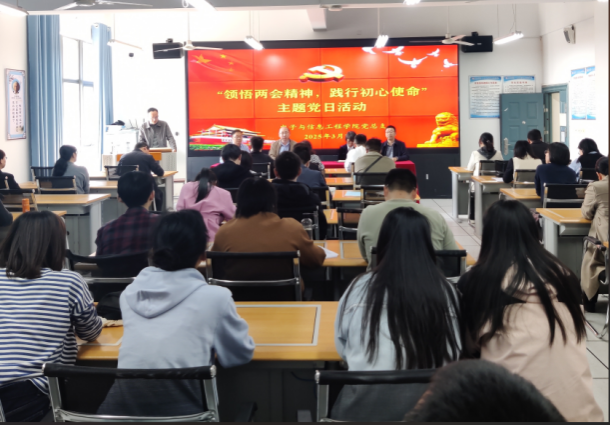 为深入贯彻落实全国两会精神,提升全体党员的政治素养和使命感,同时为扎实推进“五联五做”工作的开展,加强教工党支部与学生党支部的联系,3月26日下午,pa电子官方网站教工党支部和学生党支部在逸夫科技楼B602开展“领悟两会精神,践行初心使命”主题党日活动,本次活动由丁礼磊同志主持。