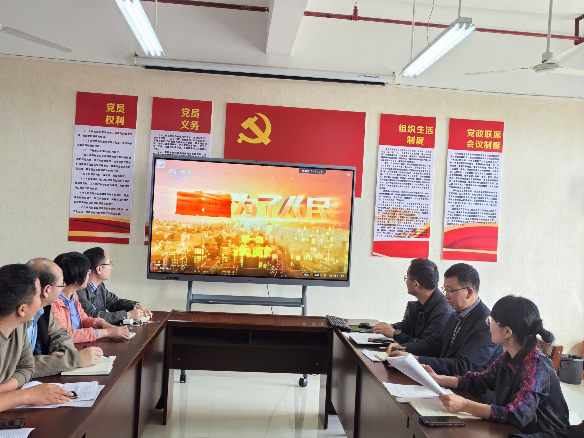 学习会上,中心组成员集体观看了电视专题片《反腐为了人民》第一集 惩治蝇贪蚁腐。