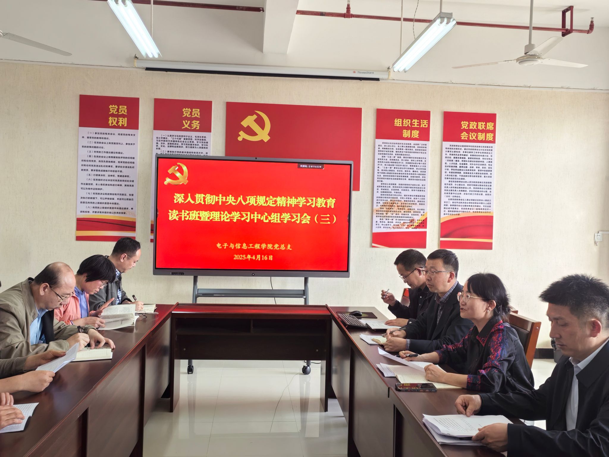 4月16日,pa电子官方网站党总支召开深入贯彻中央八项规定精神学习教育读书班暨2025年第三次理论学习中心组专题学习会,深入学习领会习近平总书记关于加强党的作风建设的重要论述,认真学习贯彻中央八项规定及其实施细则精神。会议由党总支书记田静主持。