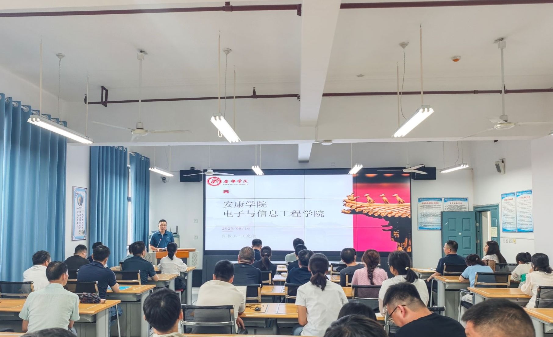 院长王克刚从学院概况、教学情况、科研情况、存在的问题、未来发展等几个方面,就学院背景与定位、师资力量与教学资源、学科设置与特色、课程设置与教学方法、实践教学与校企合作、教学质量与成果、科研方向与成果、学生实践与就业、学院发展规划与目标等具体内容进行了详细汇报与分享。王院长表示,pa电子官方网站要发挥学科专业优势,聚焦电子信息硕士点建设,着力提升人才培养质量和服务地方能力,为形成以秦巴生态数字赋能为特色的电子信息学科而努力奋斗。