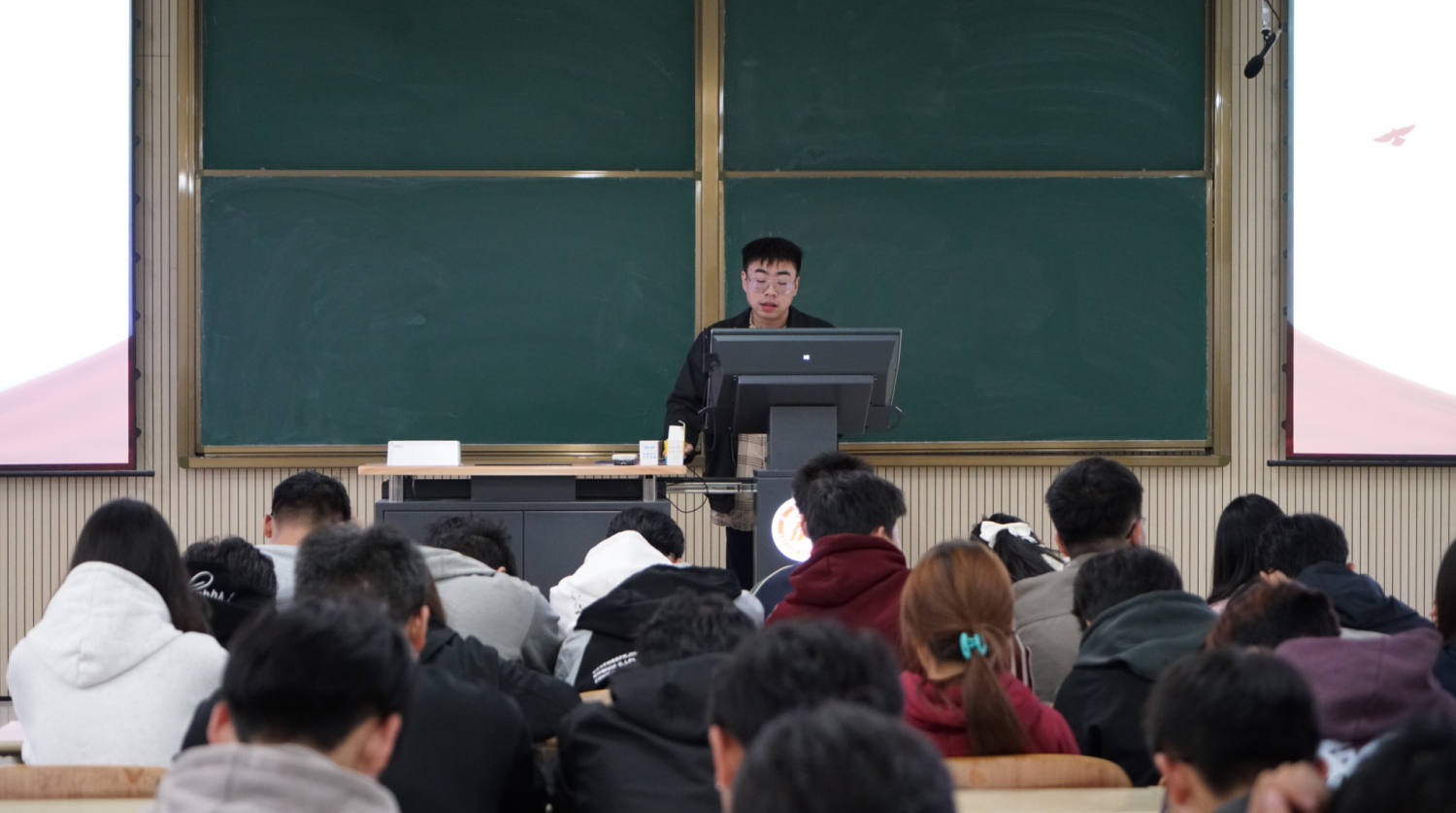 为引导电信学子筑牢信仰之基、补足精神之钙, 2025年11月5日,pa电子官方网站学生第一党支部书记翟子轩在江北校区1204教室讲授主题为《“五史”照亮前行路,青春献礼新中国》的入学教育暨专题党课,pa电子官方网站2025级全体新生、学生党员参加。