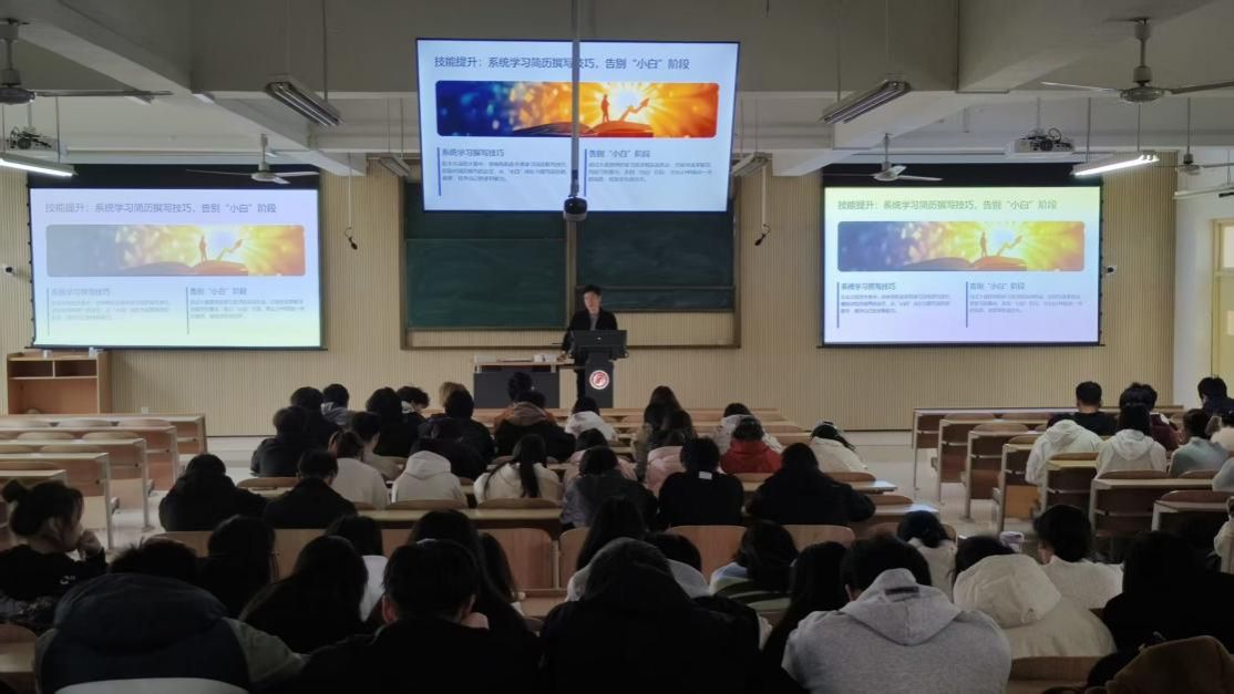 为帮助pa电子官方网站2023级学生熟练掌握简历撰写技巧、有效提升求职竞争力,11月12日,主题为“‘职’在必得,万‘历’挑一”的简历大赛备赛指导会在江北校区1301教室顺利举办。百余名学生踊跃到场参与,现场学习氛围浓厚热烈。