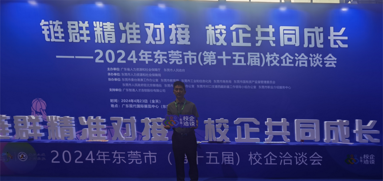 4月23日,东莞市第十五届校企洽谈会在广东现代国际展览中心开幕,大会线下邀请全国各地 250 家院校和东莞市68家优质企业参加现场洽谈。我院党总支副书记蔡正旺参加了本次会议。