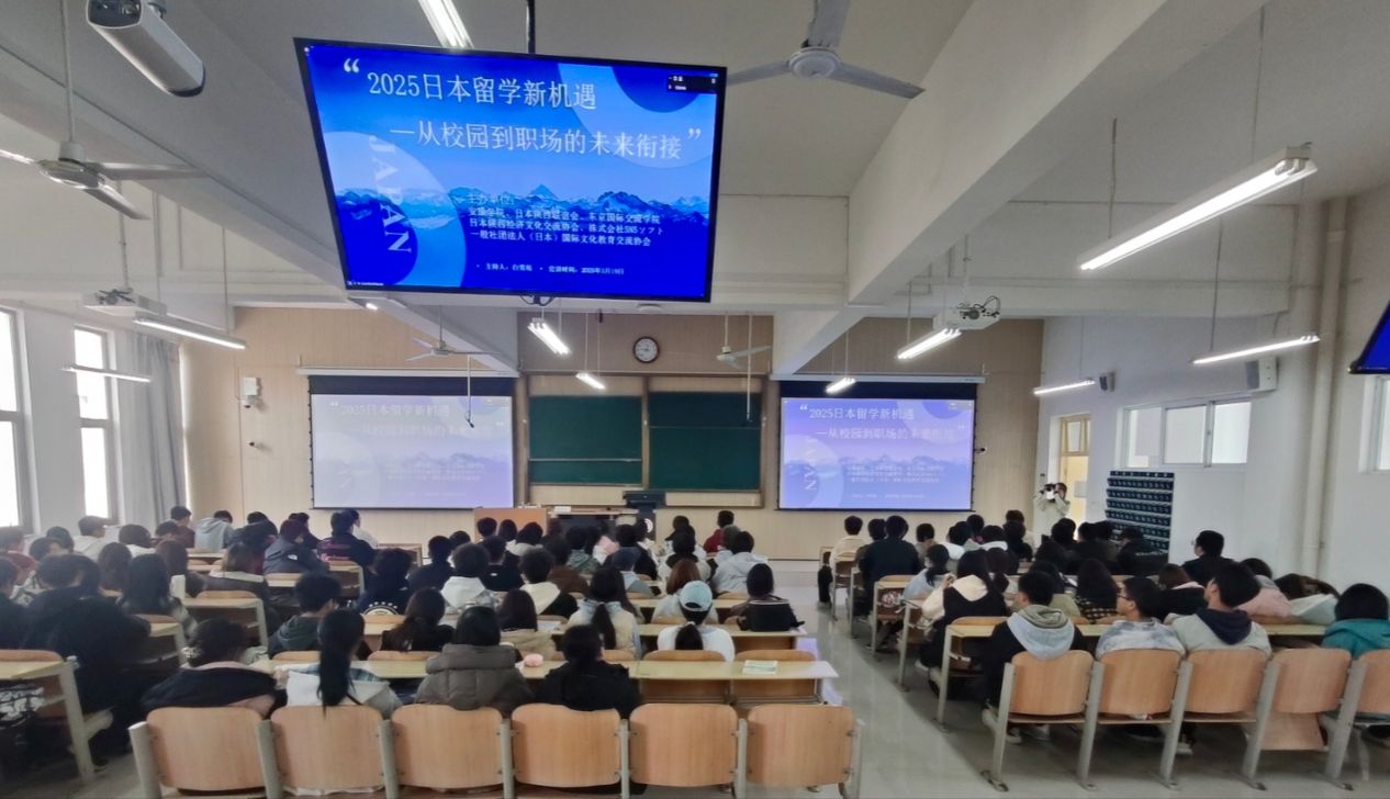 宣讲会上,此次宣讲会宣讲人白雪垠向各位学生介绍了2025年日本留学最新政策解读、申请攻略及热门专业推荐;日本就业形势、就业前景与热门行业分析。