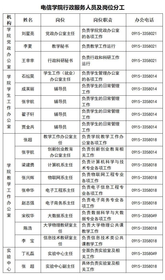 学院综合办公室:0915-3358021 学生工作办公室:0915-3358014